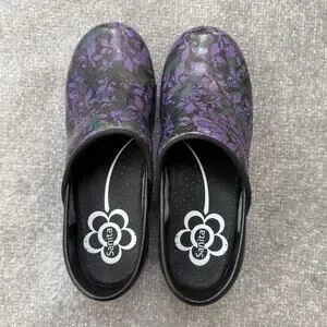 Sanita Clogs Shoes Womens Size 36 Purple Floral Danish Nursing Comfort Workwear