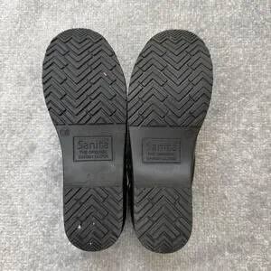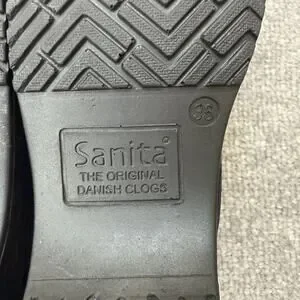 Brand markings: Sanita flower logo printed on the insole; "Sanita The Original Danish Clogs" molded on the outsole.