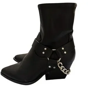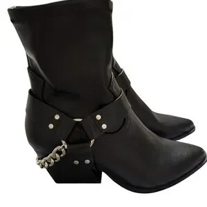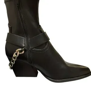 Dolce Vita Keeler chain harness moto black stack heeled boots . All man made materials. Pointed toe. Inner zippers.
