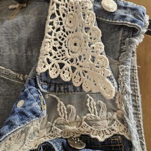 Elevate your style with this chic denim vest featuring elegant lace accents. Perfect for layering and adding a touch of sophistication to any outfit.