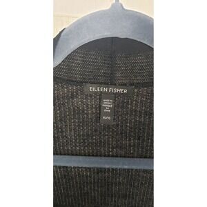 Eileen Fisher Black Knit Open Front Cardigan Sweater XL Organic Linen Cotton