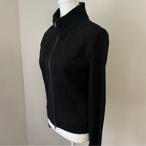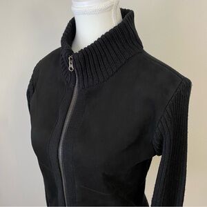 Anthropologie Charcoal Knit Suede Leather & Wool Jacket Sweater Small