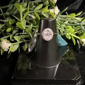 Halo Oval Cut Moissanite Sterling Silver Sz 7