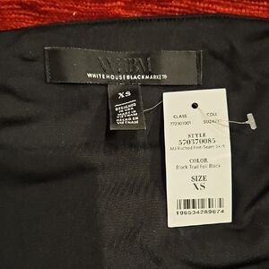 Make a stunning statement with this sophisticated White House Black Market black midi skirt in size XS, featuring an eye-catching bronze metallic foil print in a modern geometric pattern. The artful design creates a mesmerizing visual texture that catches the light with every movement—a signature element of WHBM's elevated aesthetic.