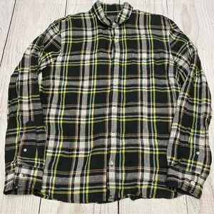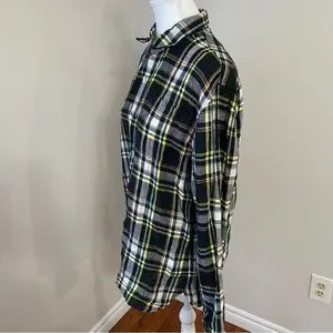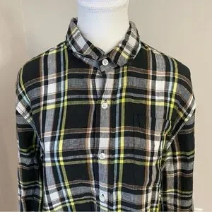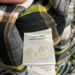 L.L. Bean Signature Linen Plaid Button-Down Shirt Slim Fit Medium