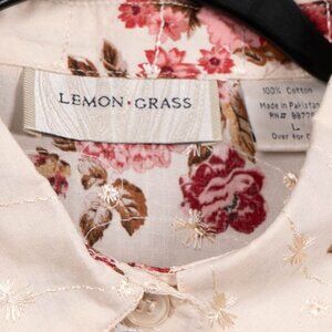 Lemon Grass VTG Button Up Shirt L Womens Floral Embroidered Cream 100% Cotton