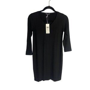 NWT, no flaws, size XS petite. Eileen Fisher Black V Neck Shift Dress. Stretchy fabric with 3/4 sleeves. Perfect staple dress. 92% Viscose/8% Spandex