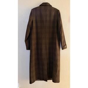 New Lauren Ralph Lauren Longline Plaid Wool Blend Reefer Coat Brown Plaid Sz 12