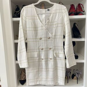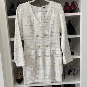 New White Gold Tweed Dress Long Sleeve Ornamental Buttons Back Zip S