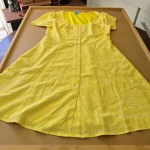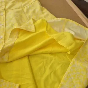 Embrace elegance with this sunny yellow midi dress. Features a floral pattern and button-down front. Ideal for any occasion.