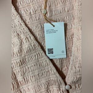 Quince Blush Pink Smocked Midi Dress NWT Ruffle Sleeve Button Front Boho large