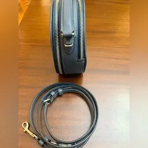Small Coach crossbody bag with handle in denim blue. Dual zippers and compartments. Smoke and pet free home.