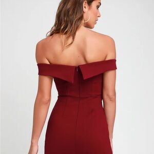 Lulu’s glam off shoulder burgundy off shoulder body con stretchy mini dress nwt off shoulder