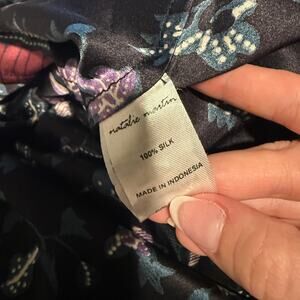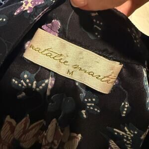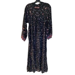 Natalie Martin Fiore Maxi Dress in Lotus Print Black. Women's Size M / Medium. Features long ankle maxi length, long sleeves, pullover style, purple and teal floral print, notch neckline. 100% silk. Great used condition, no notable flaws. Retail $293.