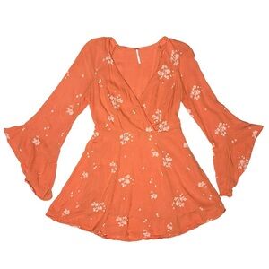 Free People Embroidered Jasmine Mini Dress Sz 8 Papaya Orange Witchy Boho Fairy