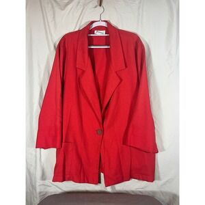 Joanna Women Red Textured One Button Blazer Jacket Size 20W