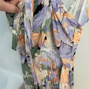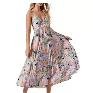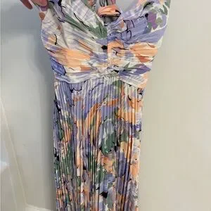 Chic floral midi dress with a vibrant multicolor design. Features a flattering silhouette and elegant flow.