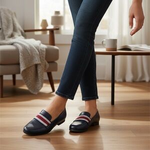 BOC comfort flats crafted in navy leather with a classic slip-on loafer silhouette. Designed with padded insoles and a supportive footbed for all-day comfort. Low stacked heel offers stability while maintaining a polished, casual look. A versatile style that pairs easily with workwear or everyday outfits.