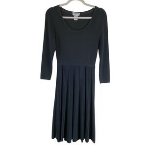Carmen Marc Valvo Pleated Knit Midi Dress Scoop Neck 3/4 Sleeve Black Sz M