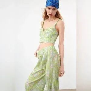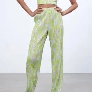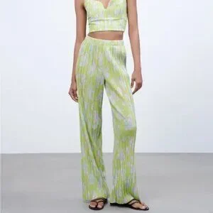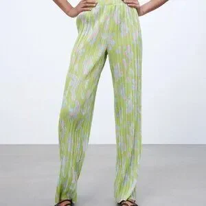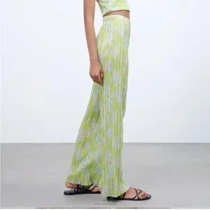 Zara Lime Green Pleated Wide Leg Pant m