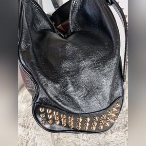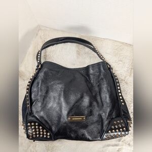 Burberry Black Leather Shoulder Bag with Gold Studs