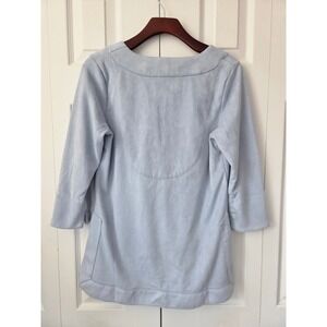 Gretchen Scott Split Neck Tunic Top Faux Suede X-Small Light Blue Side Slits