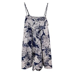 Rachel Zoe Womens 10 Navy White Tropical Print Smocked Bodice Romper