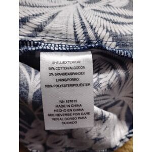 The Rachel Zoe navy white tropical print smocked bodice dress romper is a stylish and comfortable one-piece outfit perfect for casual or travel occasions. The sleeveless romper features a sweetheart neckline, floral pattern, and a zip closure for easy wear. The romper has a regular fit with a flared leg style and a 6-inch inseam, making it ideal for the summer, fall, and spring seasons. With its tropical theme and smocked accents, this romper by Rachel Zoe is a chic addition to any woman's wardrobe. The flair on the leg is large enough it looks like a dress. There are measurement pictures available.
