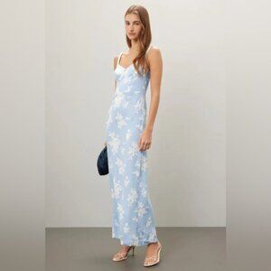 NEW Reformation Reverie Long Dress Bijou Light Blue Floral | size 4