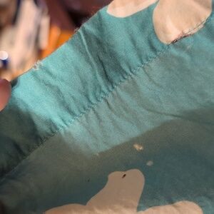 so pretty, but definitely a wounded bird. there are several worn spots. the worst worn spots are wearing through: close to collar and on the back bottom in a few spots. as I looked it over the darts look a little worn too, see pic. anyway, it's got issues but it's still wearable. I wear it with a sweater so the spot near the collar is hidden. and no one notices worn spots on the back near the hem. still, someone good at mending should save this baby. last pic shows the gorgeous buttons and the sweet print.