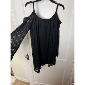 Excellent condition - no snags, holes, or stains. Black cold shoulder mini dress. Long sleeve and lace. Mini length with a relaxed flowy fit. Smoke free pet friendly home. All offers are welcome.