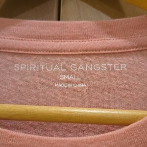 Pink tee with Spiritual Gangster branding. Simple and chic, perfect for everyday, lounging, yoga, comfy vibes. vguc, small.