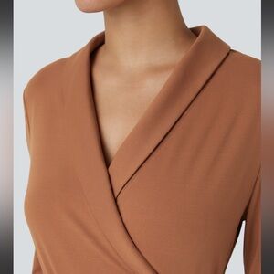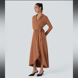 Shawl Collar Long Sleeve Tie Side Midi Work Wrap Dress