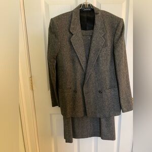 Burberrys’ camel hair double breasted gray skirt suit. Vintage 90’s. Size 6.