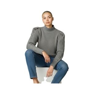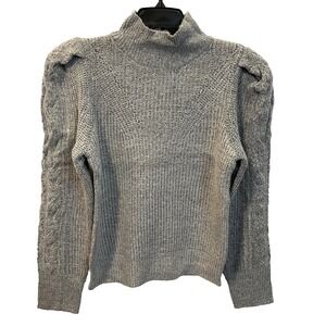 Industry Republic Women's SP Gray Heather Mock Neck Cable Knit Puffed Sleeves