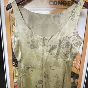 Dress has a soft, beautiful blend of colors in several hues-ominous light jade green, palo moon yellow, orleen gold, munt cream… The silk shows very nice & subtly & this dress is versatile to be worn to a dinner event, bridal shower, wedding, on a date or dresses Down with summer sandals & matching accessories. A PERFECT STAPLE PIECE FOR YOUR WARDROBE!