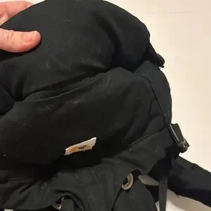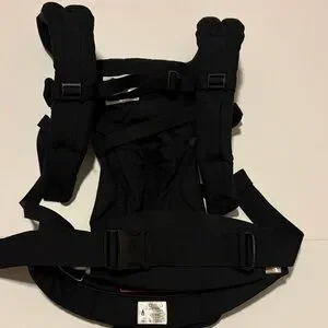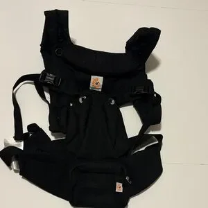 Stylish Ergobaby carrier in deep black. Features a handy front pocket for essentials. Used maybe 10 times. Never washed, but does have some marks on front as seen in photos.