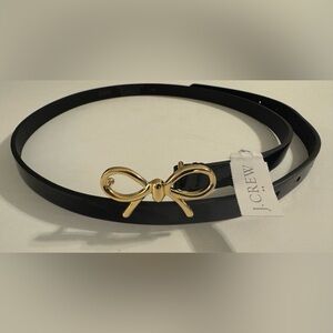 J. Crew Black Patent Leather Belt with Gold Bow