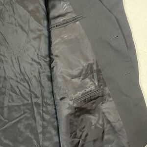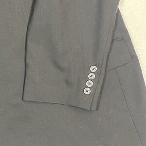 Classic black 2-button wool blazer from Pronto Uomo. Clean, tailored silhouette with notch lapels, dual front flap pockets, chest pocket, and fully lined interior. Versatile for business, formal events, or dress-casual wear.