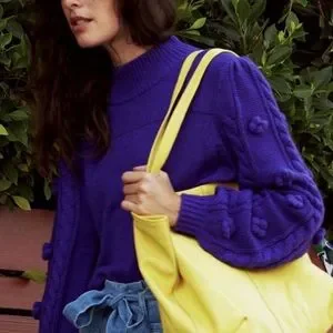 Cozy and chic, this sweater features textured embellishments stitched to brighten your mood.