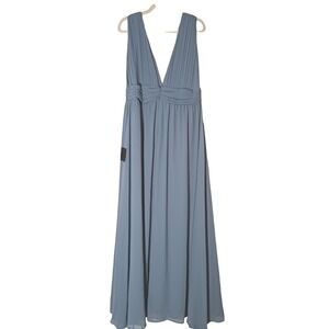 Keywords: Lulus dress, maxi dress, formal gown, bridesmaid dress, evening dress, prom dress, chiffon dress, plunging neckline, high slit, sleeveless dress, dusty blue dress, elegant dress, long dress, special occasion dress, party dress, empire waist dress