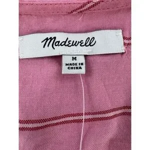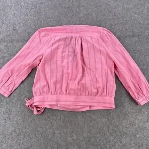 Madewell Blouse Womens Medium Pink Striped Wrap Tie Waist 3/4 Sleeve Cotton