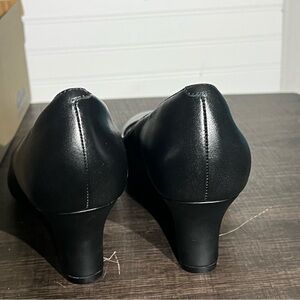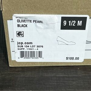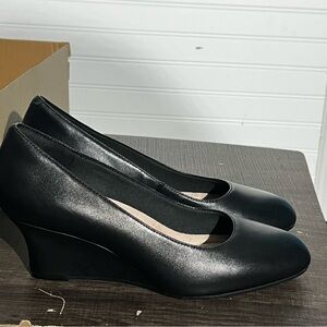 NWT Clarks Olivette Pearl Black Wedge Heels