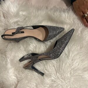 Elegant Gray Glitter Slingback Heels