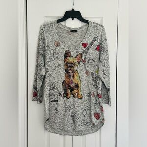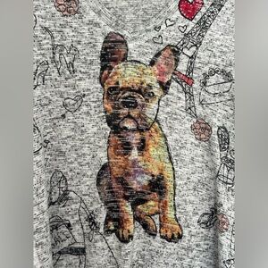 Inoah Tunic Top Artsy French Bulldog Paris Eiffel Tower Soft Knit Sweater Size M