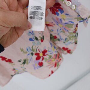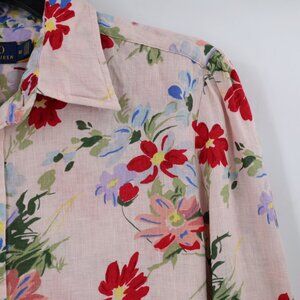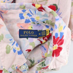 Polo Ralph Lauren Tunic Women's 10 linen Long Sleeve Top Floral Button Down