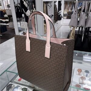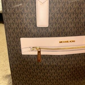 Stylish and spacious, this Michael Kors tote bag features a chic brown and pink design. Perfect for everyday use, it combines elegance with functionality. Small wear, pictured.