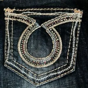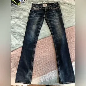 Big Star Liv mid rise skinny jeans. Dark wash with a small amount of factory distressing. A few gems have fallen off the back pockets. Otherwise in great condition.