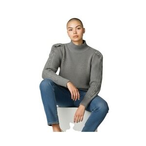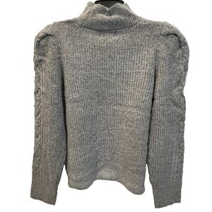 Industry Republic Women's XS Gray Heather Mock Neck Cable Knit Puffed Sleeves
