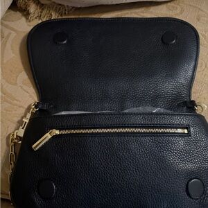 TORY BURCH Black Leather Amanda Logo Clutch Crossbody Chain Link Shoulder EUC
